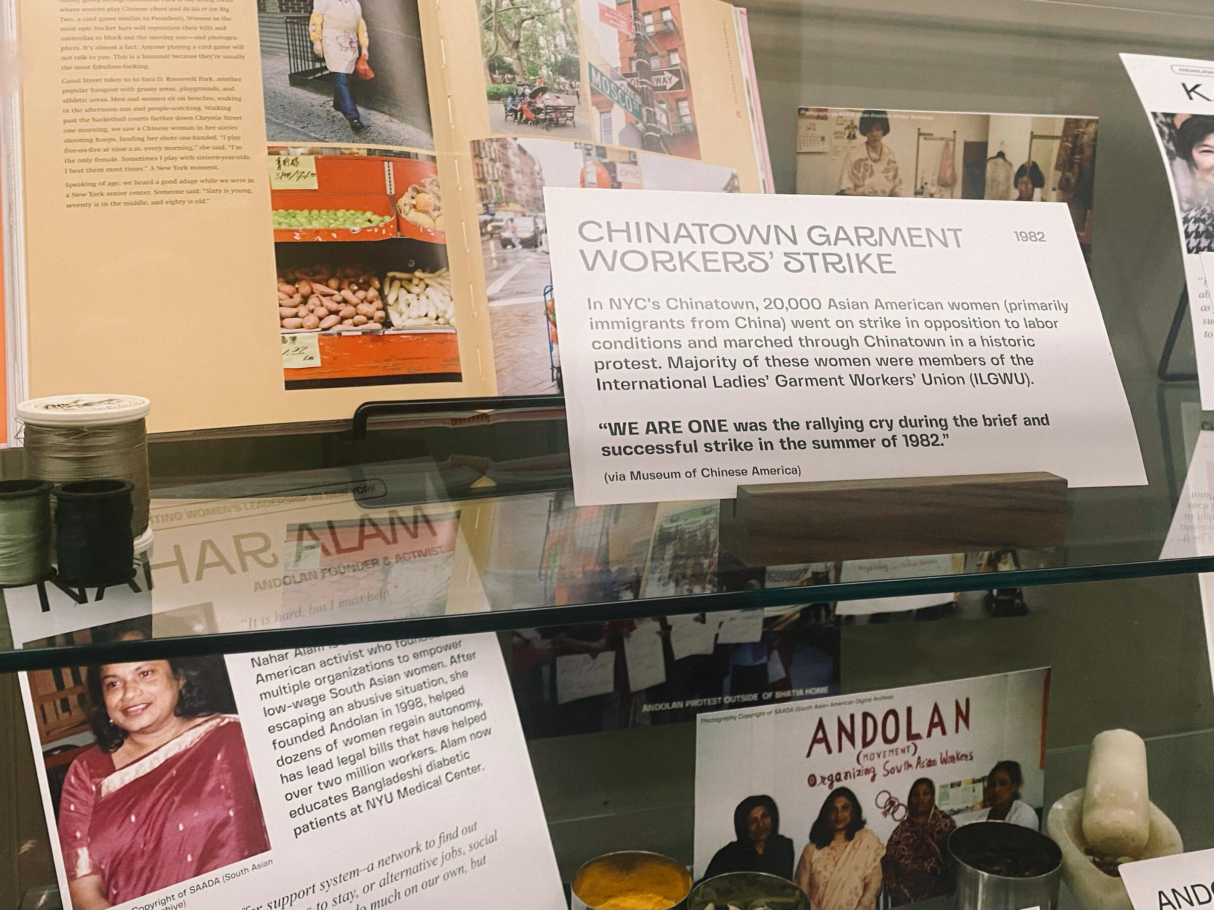 How has the erasure of Asian American women’s contributions to New York’s leadership and activism affected current day sentiment? Further, how can we share the underrepresented history of Asian American women’s contributions? This digital exhibit explores the women-led activism of Asian American immigrants in New York City through photography, video, audio, interviews, and documents. My research focuses on Asian American women and their role in shaping New York’s labor rights. Collective Threads explores two movements within this topic, the 1982 Chinatown garment workers’ strike and the Andolan movement, led by women including Katie Quan, May Chen, and Nahar Alam. In America's current political landscape, it is necessary to remember positive social change from immigrant groups. Collective Threads draws attention to the collective bravery of Asian American women in New York through a contemporary narrative lens.